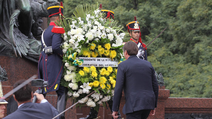 La agenda del Presidente brasileño, que llegó acompañado de gran parte de su gabinete de ministros, comenzó en la mañana con una ofrenda floral al monumento del libertador José de San Martín.