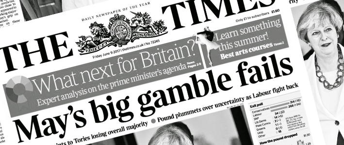 Las elecciones anticipadas dejan a May sin mayoría parlamentaria. Debilitada, se alía con el Partido Unionista Democrático (DUP) de Irlanda del Norte, favorable a un Brexit duro.