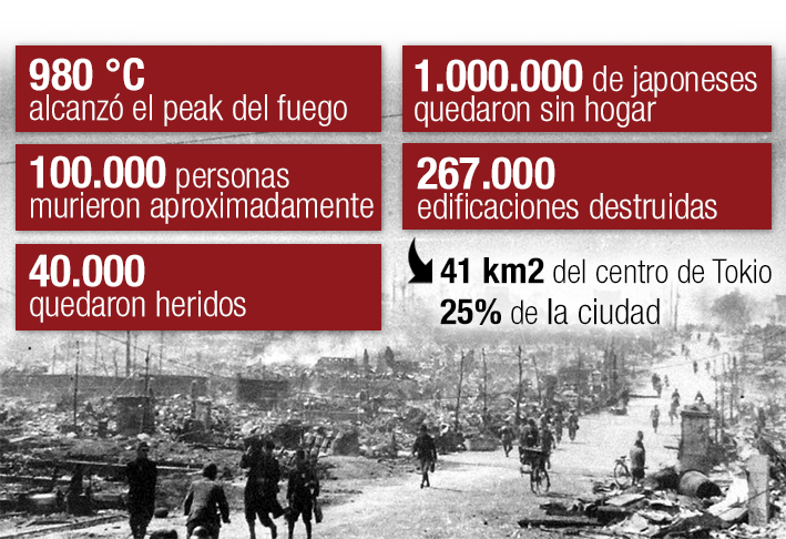 "En ese entonces, la estructura de Tokio se beneficiaba mucho de los bosques que quedaban cerca de la ciudad. Por tanto, las casas y edificios eran construidos de madera, lo que significaba que eran particularmente sensibles al bombardeo incendiario", comenta Iacobelli. Pero agrega: "El tema es el desastre humanitario que causa y la devastación de la ciudad. Tokio quedó en cenizas y no es una metáfora".