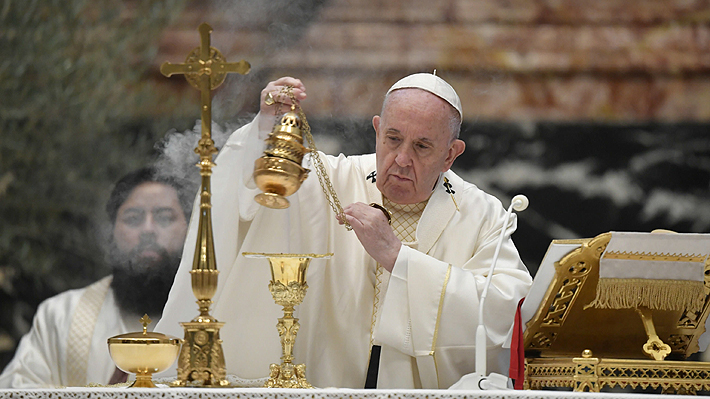 Francisco celebró la misa vespertina de Semana Santa en la Basílica de San Pedro, que estuvo cerrada al público debido a las restricciones que se han implementado para frenar la propagación del nuevo coronavirus.