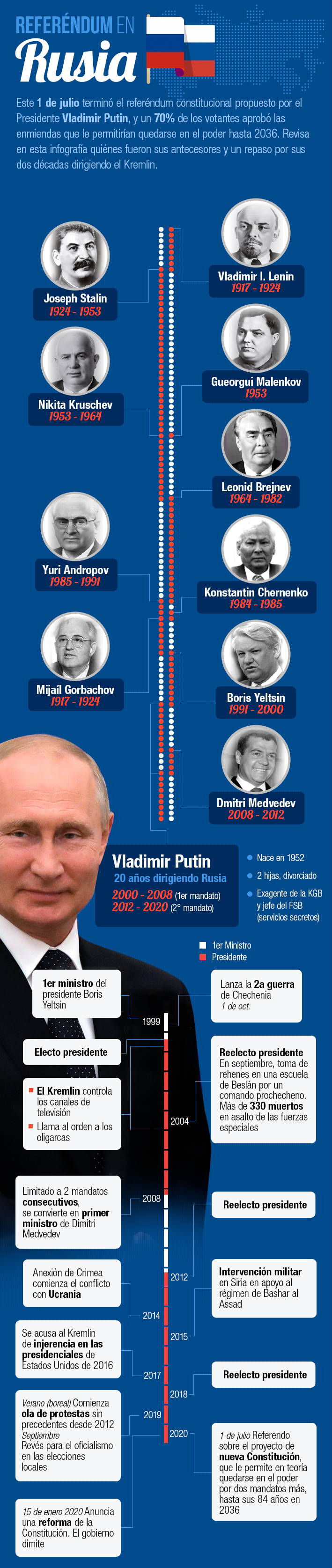 Putin podría ampliar su mandato en Rusia: Los líderes que lo antecedieron y los hitos de sus 20 años al poder