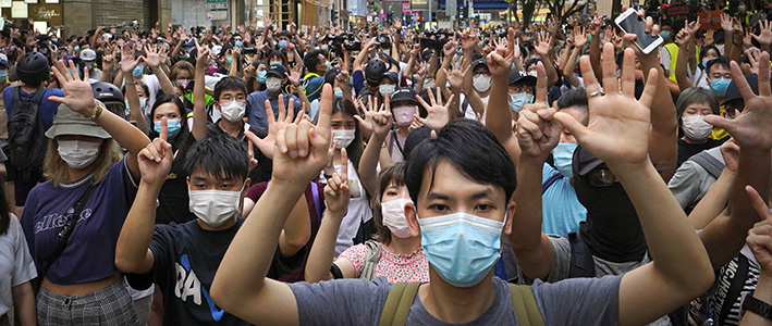 Una manifestación en Hong Kong en el aniversario de su separación con Reino Unido. | APWashington ya reconoce abiertamente que su objetivo es "inducir el cambio" en China al considerar que, si no lo consigue, el mundo no podrá considerarse seguro, poniendo como ejemplo la violación de derechos humanos en Xinjiang y el recorte de libertades en Hong Kong, asuntos sobre los que también han chocado ambas potencias.