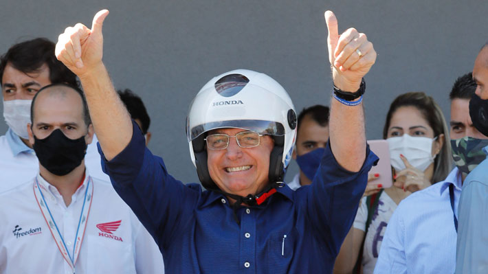 Tras el anuncio, Bolsonaro salió a pasear en motocicleta por Brasilia y visitó algunos locales comerciales,