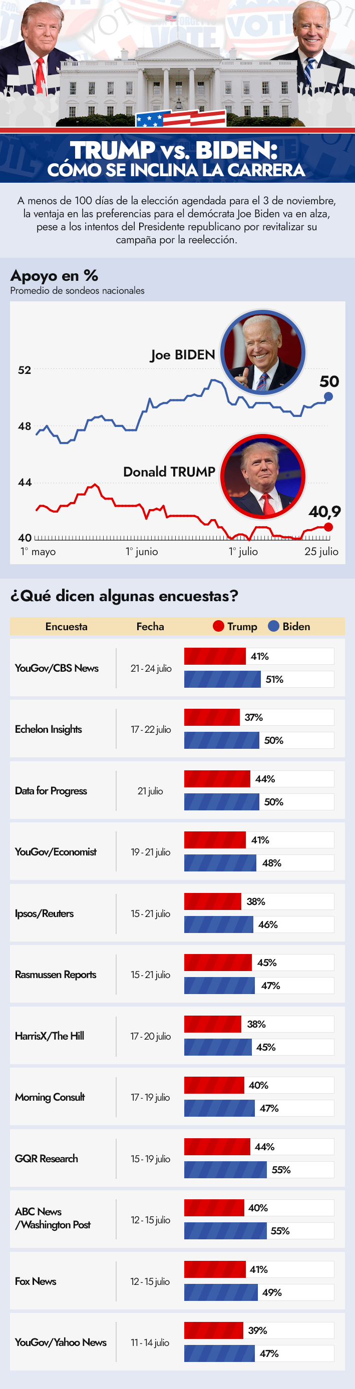 Trump vs. Biden: Qué dicen las encuestas a menos de 100 días de las elecciones presidenciales en EE.UU.