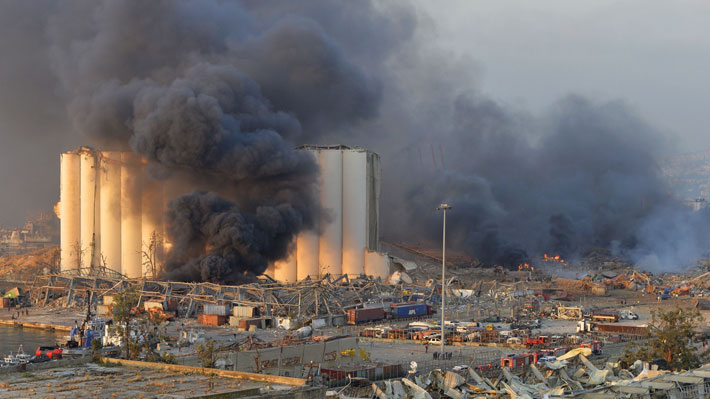 La explosión se produjo en el puerto de Beirut y sacudió a toda la capital libanesa, generando una enorme onda expansiva y una gran columna de humo.