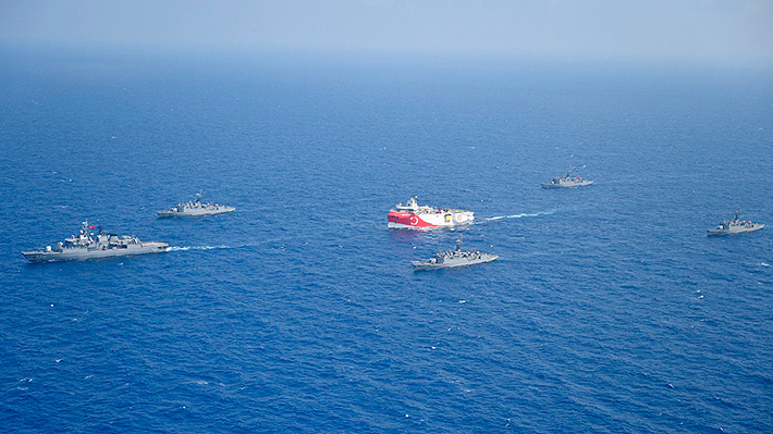 Ahora, por la zona en conflicto se mueve el buque explorador turco Oruç Reis, realizando mediciones sísmicas para identificar posibles yacimientos de gas, flanqueado por varias fragatas turcas y observado de cerca por buques militares helenos.