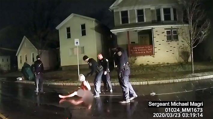 El video recién obtenido por la familia, filmado por cámaras colocadas en la vestimenta de los agentes, muestra a Daniel Prude desnudo y desarmado.
