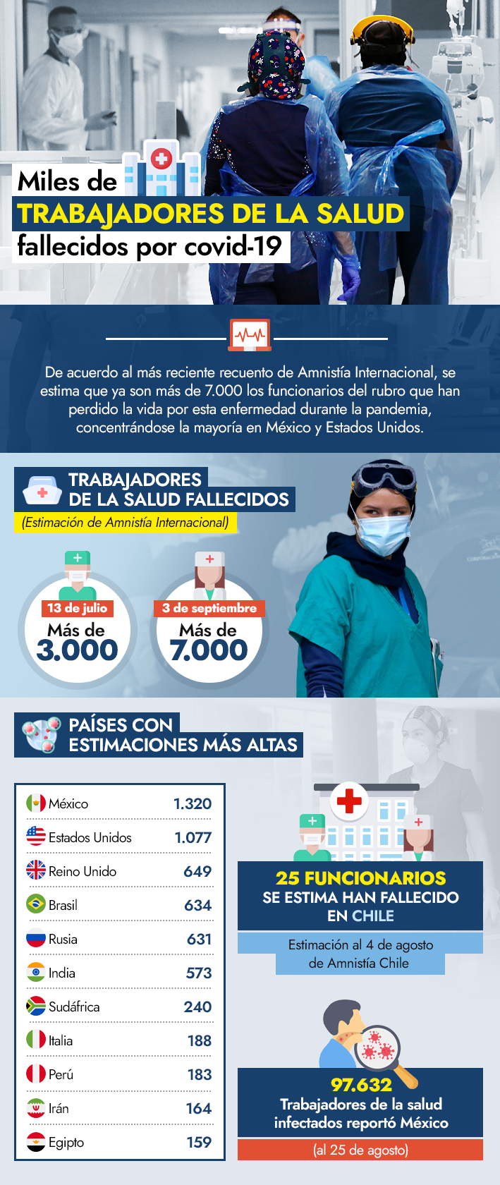 Amnistía estima que más de 7.000 trabajadores de la salud han fallecido por covid-19 en el mundo
