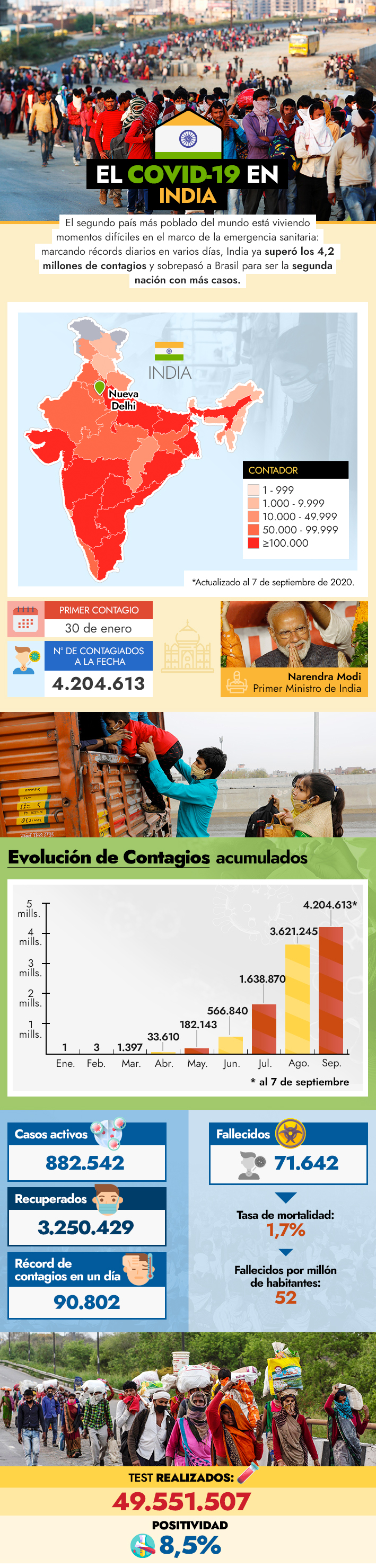 Las cifras de la pandemia en India, el segundo país con más casos de covid-19 tras superar a Brasil
