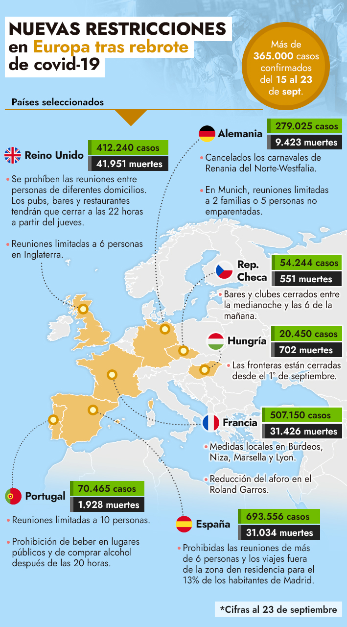 Rebrote en Europa: Las medidas que han tomado algunos países tras reportar miles de casos nuevos de coronavirus