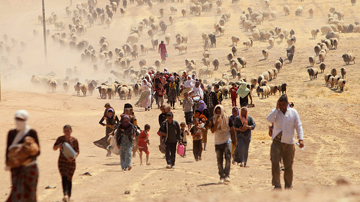 El 3 de agosto de 2014, cerca de 400.000 miembros de la minoría yazidí lograron escapar de Sinyar, mientras que miles de hombres fueron ejecutados, otras tantas mujeres eran llevadas a la fuerza como esclavas sexuales y los niños, a luchar al frente.