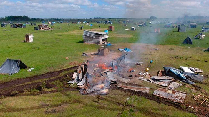 Así, fueron más de 4.000 efectivos los que rodearon la zona e ingresaron al terreno derribando casillas, consignan los medios. Como respuesta, los ocupantes se defendieron con palos, piedras, fierros e incluso escudos, mientras que la policía reprimía con gas lacrimógeno y balines de goma. Luego comenzaron las llamas, el humo, mientras se escuchaban gritos y cánticos de "vamos a volver".