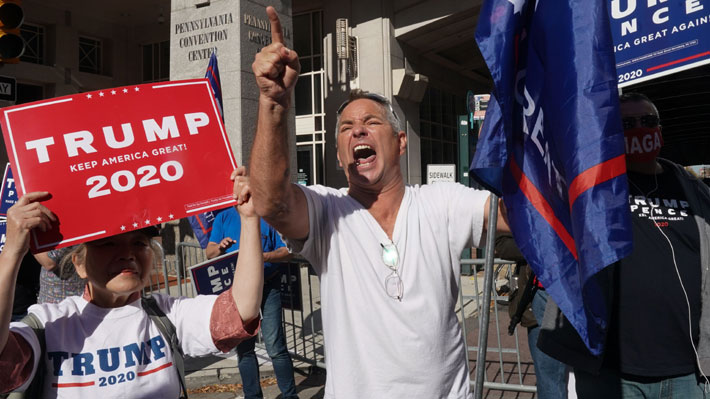 Joe Biden es quien roza la victoria, con 264 delegados, sobre los 214 de Trump. Ambos necesitan un mínimo de 270 para ganar las elecciones. Esta estrecha disputa por el triunfo ha generado no sólo las acusaciones de Trump sobre un presunto "fraude" en las elecciones, sino que también ha despertado las pasiones de adherentes y detractores.