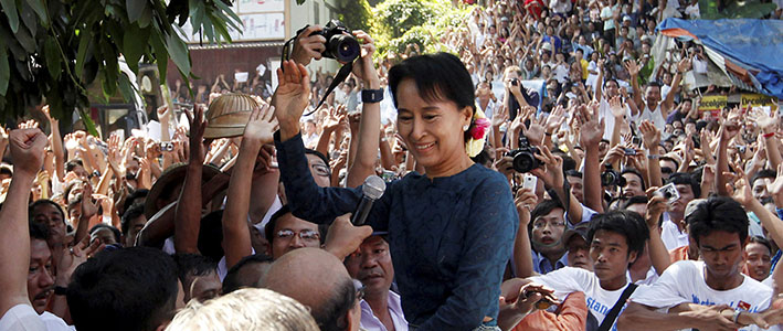 Suu Kyi, al frente de la LND, logra ser elegida parlamentaria al arrasar en unas elecciones parciales, celebradas para ocupar un puñado de escaños vacíos.
