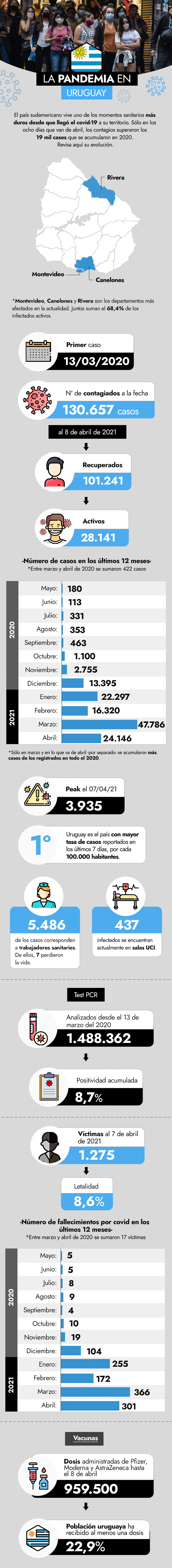 Sólo en una semana de abril superó las muertes y casos de todo 2020: La evolución de la pandemia en Uruguay