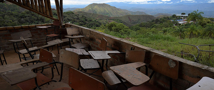 "Pasaron los acuerdos de (paz de) La Habana y aquí nunca se asomó el ejército. Hoy esta zona nuevamente está cogida por grupos armados al margen de la ley (...) Hemos aprendido que el que tenga las armas, lo tenemos que respetar", concede Reinaldo Bolaños.