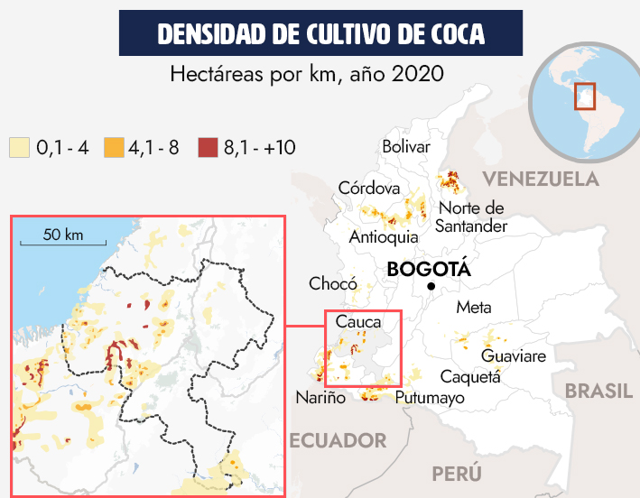 Los cocaleros se jactan de haber expulsado a militares y erradicadores. El ministro de Defensa, Diego Molano, reconoce que el gobierno ha intervenido con "menos intensidad" en el Cauca por el riesgo de violencia contra la fuerza pública. "No les vamos permitir a estos grupos que sigan con esa dinámica delincuencial", advirtió.