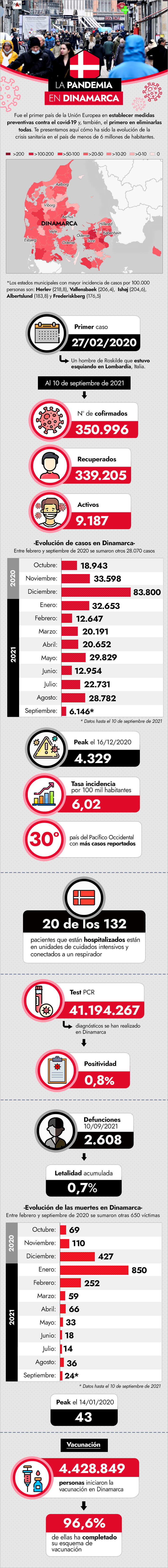 Desde febrero de 2020 hasta la fecha, más de 350 mil casos de covid-19 han sido detectados en el reino de casi 6 millones de habitantes. De ellos, unos 2.600 perdieron la vida, lo que arroja un 0,7% de letalidad acumulada.