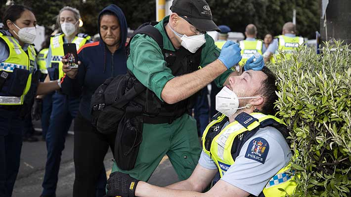 Las protestas de los grupos antivacuna frente al Parlamento neozelandés, se saldaron este martes con
