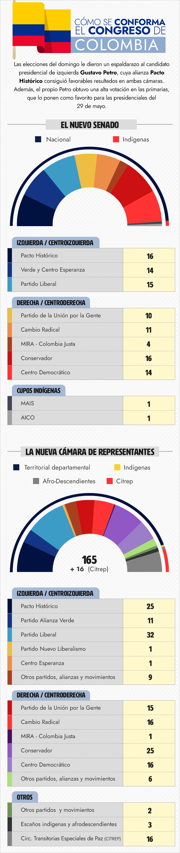 Cómo quedan representadas las fuerzas políticas en el Congreso de Colombia tras las elecciones legislativas