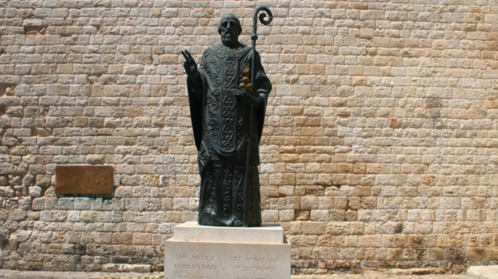 San Nicolás fue obispo en la ciudad de Mira, en la Anatolia, y sus restos reposaron en ese lugar durante siglos, hasta que en el año 1085 fueron trasladados a la ciudad italiana de Bari a raíz de la ocupación musulmana en la península de Asia Menor.