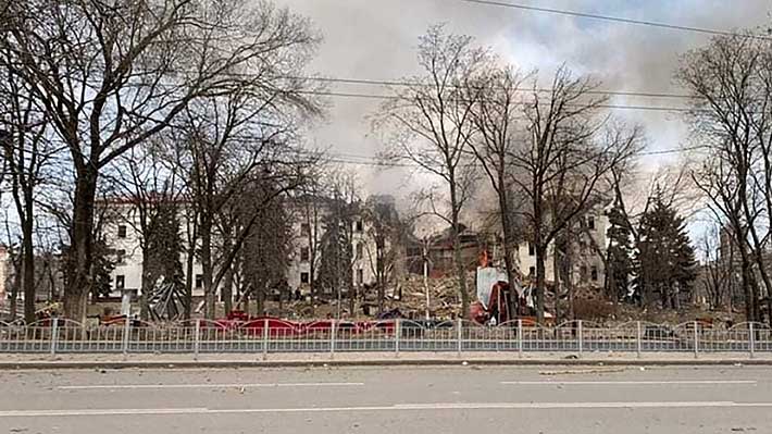 El teatro, situado en el centro de Mariúpol, fue alcanzado por un bombardeo el 16 de marzo.