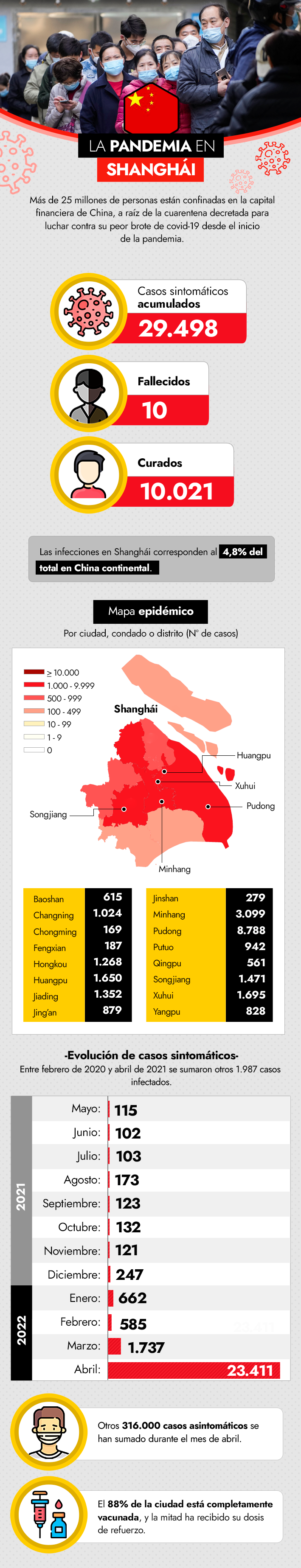 Infografía: Johanna Mellado, Emol | Contenido: José Manuel Vilches, Emol | Fuentes:Comisión Municipal de Salud de Shanghai / NYT / NetEase News / Shine
