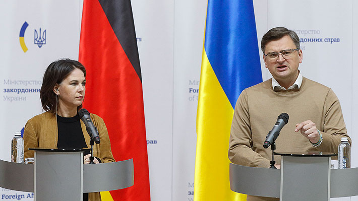 "Quisiera agradecer a Alemania por su cambio de postura en varios temas. Alemania cambió su postura sobre la entrega de armas a Ucrania (...) y anunció el inicio de una nueva política hacia Rusia", dijo el ministro ucraniano de Relaciones Exteriores, Dmytro Kuleba, en una rueda de prensa en Kiev junto a su par germana Annalena Baerbock.