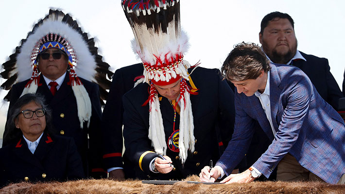 El pago es parte de un acuerdo firmado el jueves por el Primer Ministro canadiense, Justin Trudeau, y el jefe tribal de los siksika, Ouray Crowfoot, en el territorio tradicional del grupo indígena, al este de la ciudad de Calgary.