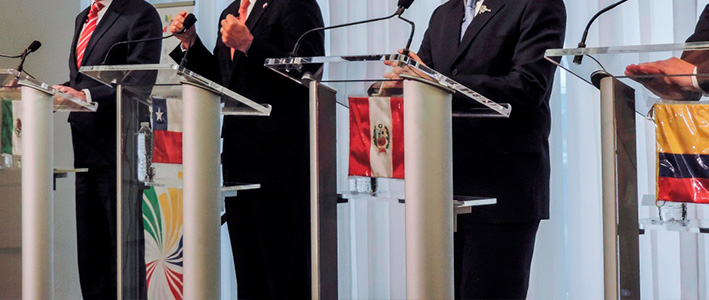 Cena en honor a los cancilleres de la Alianza, liderados por Bachelet en 2017Si bien, a criterio de Tovar, “el vaivén político perjudica en exceso los intentos de integrar las economías regionales de Latinoamérica”, a diferencia de otros mecanismos —como el Mercosur (Argentina, Brasil, Paraguay y Uruguay)—, la Alianza del Pacífico se ha concentrado en políticas comerciales pragmáticas.