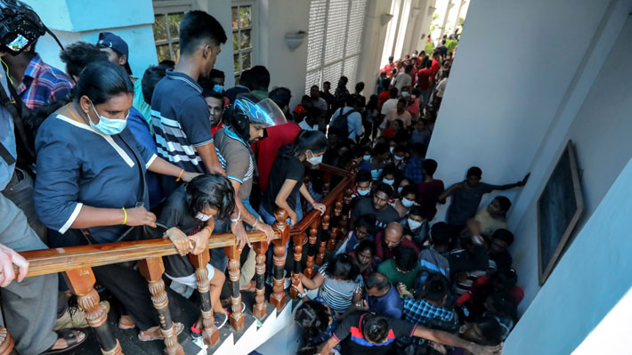 Cientos de miles de personas se congregaron en la capital, Colombo, para exigir que Rajapaksa asuma su responsabilidad por la escasez de medicinas, comida y combustible que llevaron a un país relativamente próspero al caos.