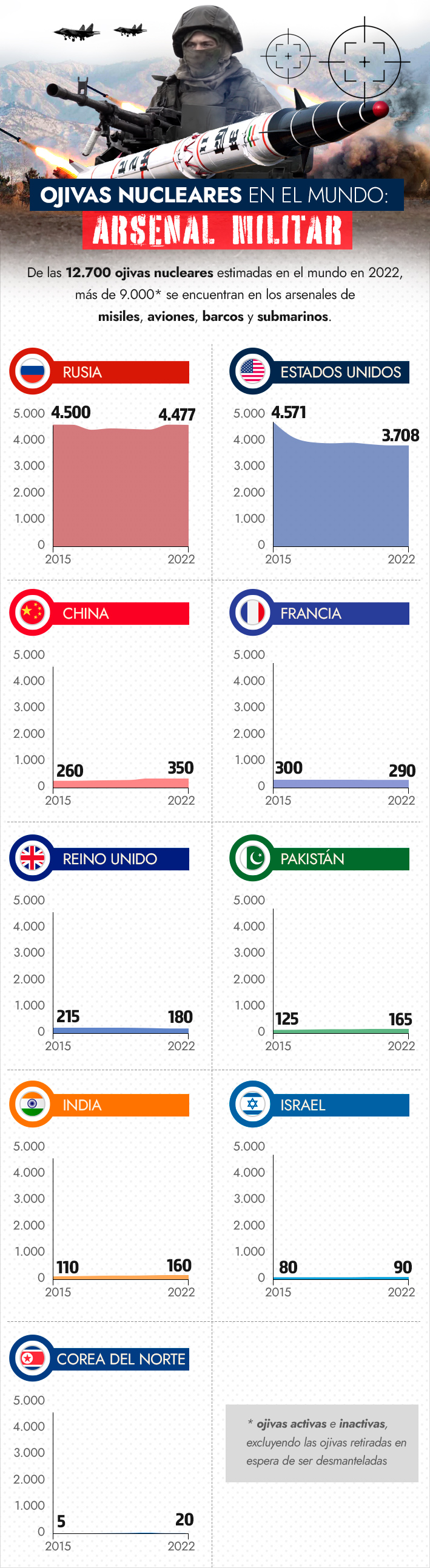 ¿Cuántas ojivas nucleares hay en el mundo?: EE.UU y Rusia concentran el mayor número