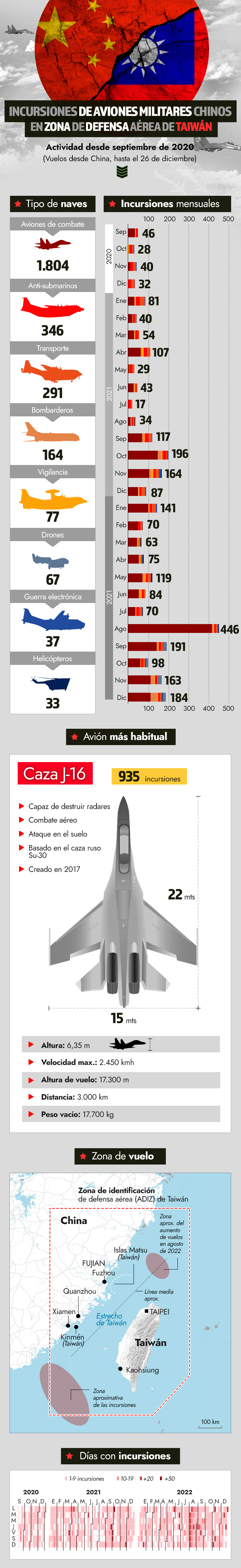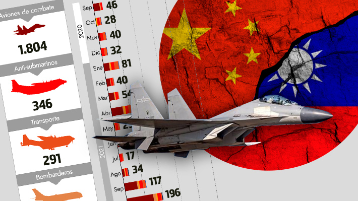 Más de 1.800 aviones de combate han entrado en este territorio en los últimos dos años, la mayoría de ellos son caza J-16. En agosto de 2023 se registraron más de 446 eventos.