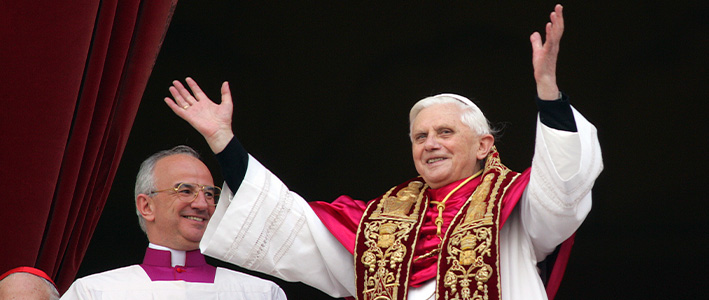 ReutersEl 19 de abril, tras la muerte del Papa Juan Pablo II y las elecciones del cónclave, una columna blanca sale de la Capilla Sixtina. A los 78 años, Ratzinger es elegido Papa N° 265, adoptando el nombre de Benedicto XVI. “Los Cardenales me han elegido a mí, un trabajador sencillo y humilde en la viña del Señor”, dice saludando a la multitud. Cuatro meses después elige Alemania como su primer viaje fuera de Italia y el 23 de octubre declara santo al Padre Alberto Hurtado, siendo la primera canonización de su pontificado.