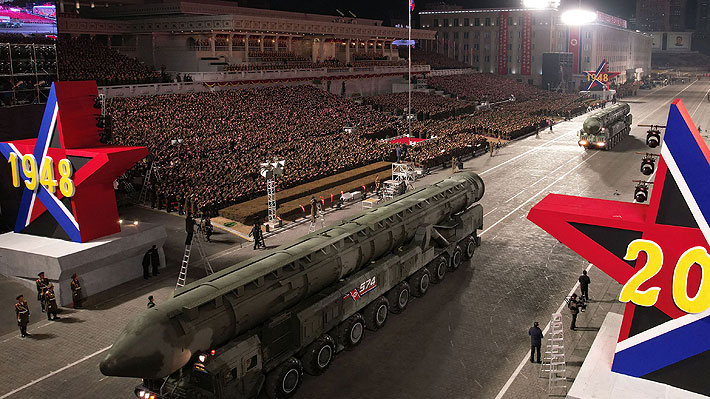Las armas expuestas incluyeron al menos 10 misiles intercontinentales (ICBM) Hwasong-17, los más avanzados del país, y vehículos aparentemente diseñados para transportar ICBM de combustible sólido, indicó la web especializada NK News.