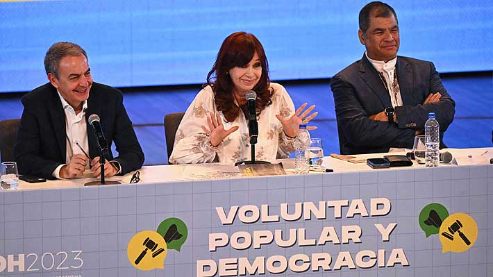 Fernández participó en la mesa de cierre de la jornada "Voluntad popular y democracia: del partido militar al partido judicial, las amenazas a la democracia", organizada por el Grupo de Puebla, foro que reúne a líderes progresistas de Latinoamérica y de España, como "respaldo" a la vicepresidenta por lo que considera una persecución judicial en su contra.