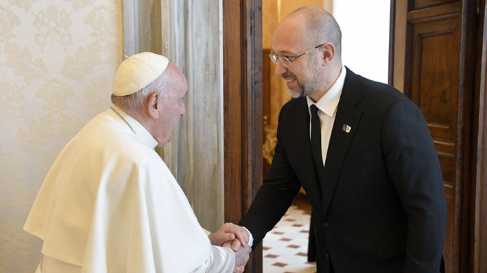 Shmyhal explicó, en una rueda de prensa, que con Francisco habló del plan de paz que ha señalado el Presidente Volodomir Zelenski y de "los posibles pasos que podría dar el Vaticano para ayudar a llegar a la paz".