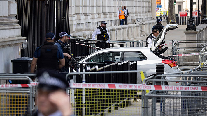 "Alrededor de las 16:20 horas (11:20 en Chile), un auto chocó contra las rejas de Downing Street en Whitehall", la avenida en donde desemboca Downing Street.