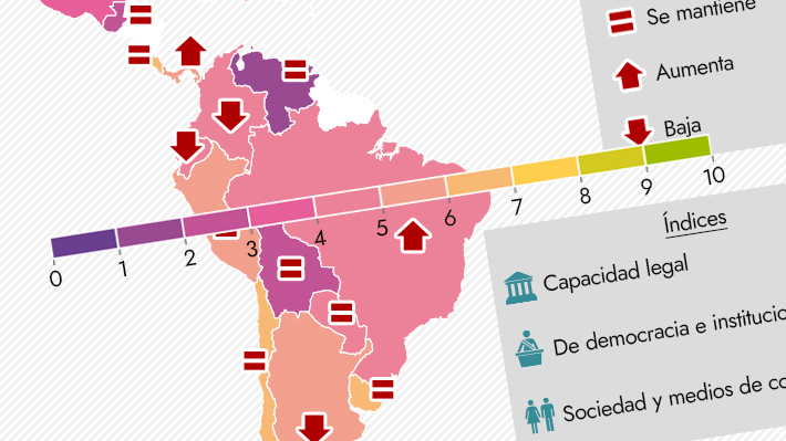 A pesar de que el indicador también bajó en el territorio nacional, Chile junto a Uruguay y Costa Rica mantuvieron sus posiciones a la cabeza. El reporte señala que la disminución del puntaje —en nuestro caso— reflejó "cierto grado de estancamiento", aunque nos mantenemos "muy por encima de la media regional".