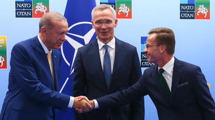 Dijo estar "contento de anunciar" que como resultado de la reunión celebrada hoy en Vilna el Presidente Erdogan acordó enviar al Parlamento turco los documentos para ratificar la adhesión de Suecia a la OTAN.