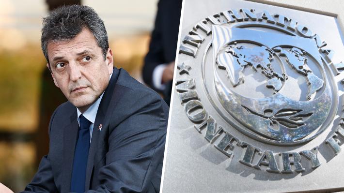 Sergio Massa, ministro de Economía argentino, e imagen de la sede del Fondo Monetario Internacional.