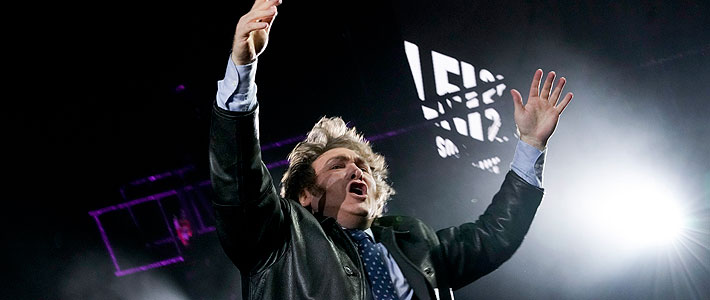 Acompañado además por otros referentes de La Libertad Avanza, como Victoria Villarruel y Carolina Píparo, el libertario comenzó con sus palabras minutos después de las 21:30 horas (20:30 en Chile). Antes, se sumó a corear con el público "Que se vayan todos", un cántico contra la "casta política" a la que cuestiona abiertamente y que rememora al 2001, para luego denunciar que los políticos enviaron "255.000 bots para sabotear" el evento.