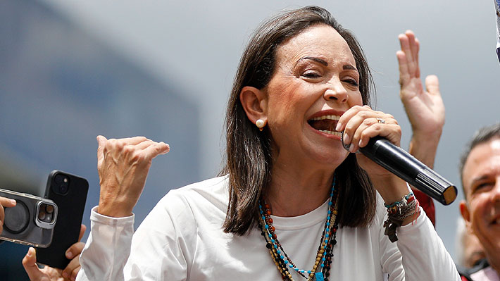 La ex congresista se subió a un camión que está recorriendo las calles de Caracas, acompañada por varios dirigentes opositores pero no por su candidato Edmundo González Urrutia, en medio de vítores y gritos de "¡Libertad, libertad!".