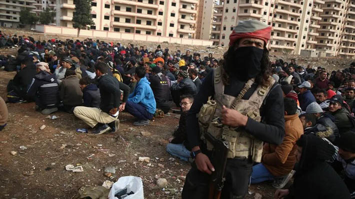 Miembros de las fuerzas del gobierno sirio detenidos por los rebeldes en Homs, Siria. EFE/EPA/Bilal Al Hammoud