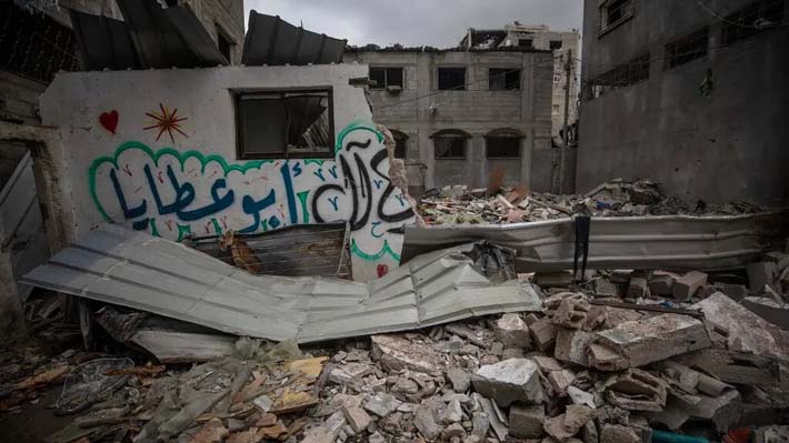Detalle de una casa destruida tras un ataque aéreo israelí en el campo de refugiados de Al Nusairat, en el centro de la Franja de Gaza.