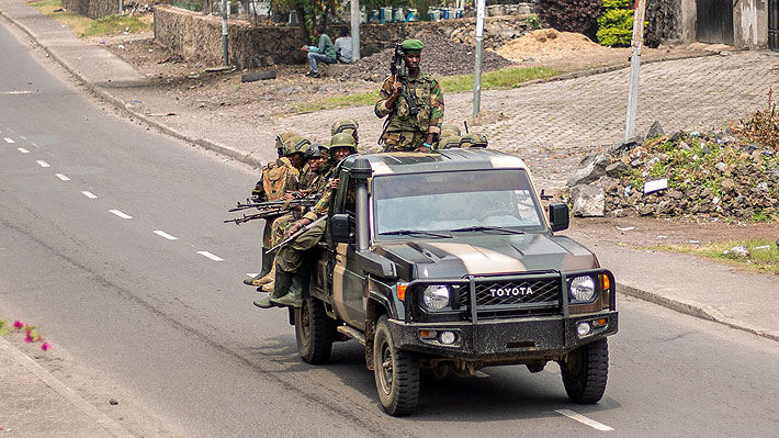 También se ven a decenas de combatientes del M23 marchando por las principales calles de Goma, algunos con chalecos antibalas y armas congoleñas.