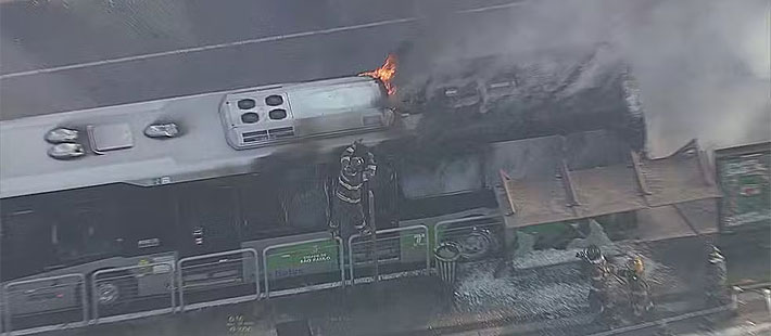 Imagen del bus quemado (Foto: Captura de video O Globo)