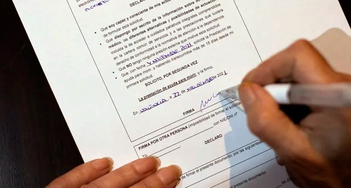 Fotografía referencial de persona firmando solicitud para solicitar la eutanasia. | EFE