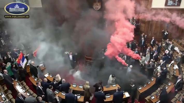 Varias personas resultaron heridas este martes en el Parlamento de Serbia en un altercado entre diputados del gobernante Partido Progresista Serbio (SNS) y miembros de la oposición que incluyó lanzamiento de bombas de humo.