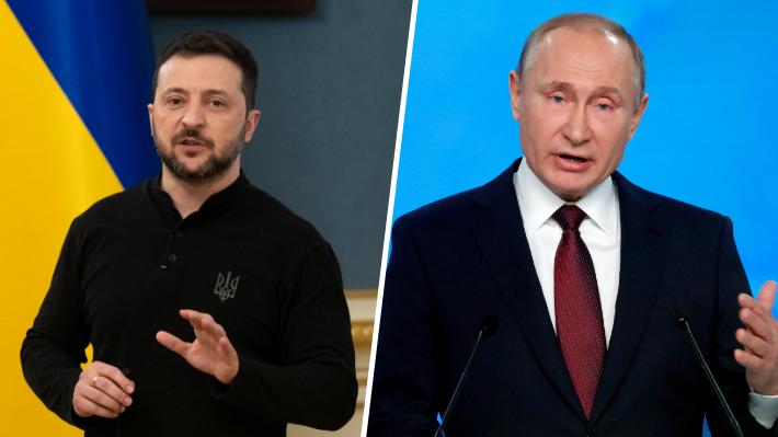 Los presidentes de Ucrania y Rusia, Volodimir Zelenski y Vladimir Putin.
